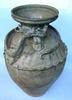 瓶的一种式样。明器。因瓶的颈、肩处堆塑一条蟠龙,故名。亦称“扳依瓶”或“招魂瓶”长颈,有盖,盖顶钮塑成虎、凤、鹤等各种形式,圆腹、圈足。常见于宋、元明各代。下面介绍一种清雍正画珐琅蟠龙瓶。 更多信息