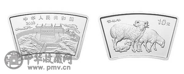 【藏品名称】2003中国癸未(羊)年1盎司扇形纪念银币
