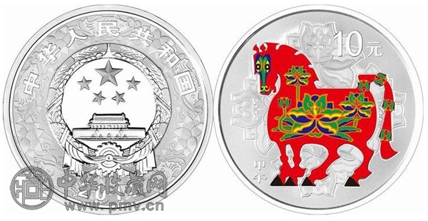 【藏品描述】该藏品是由2014年甲午(马)年1/10盎司彩金币和2014年甲午(马)年1盎司彩银币各一枚组合而成,合成为2014年甲午(马)年1/10盎司彩金币、1盎司彩银币套装,简称为彩金银马币。