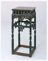 【名称】清乾隆紫檀雕花方几 【类别】故宫明清家具 【年代】清代乾隆 【文物原属】清宫旧藏 【文物现状】现藏北京故宫博物院 【简介】 横:38cm,纵:38cm,高:87cm。 几紫檀木质,方形,束腰呈方瓶立柱式,透雕方瓶多个。花牙上透雕西蕃莲纹,花牙下之横枨上雕卷叶纹,枨子中心透雕西蕃莲纹并由雕花柱与花牙相连。腿上部雕西洋花纹,中部雕成方瓶状,下部方材直腿上雕方瓶纹。几足雕卷云纹,下承饰西洋花纹的托泥之。在中式家具上雕饰西洋花纹是典型的清式家具的做法。此几为室内陈设器,应置于宝座之前。 上一篇:清乾隆紫檀多宝格方匣