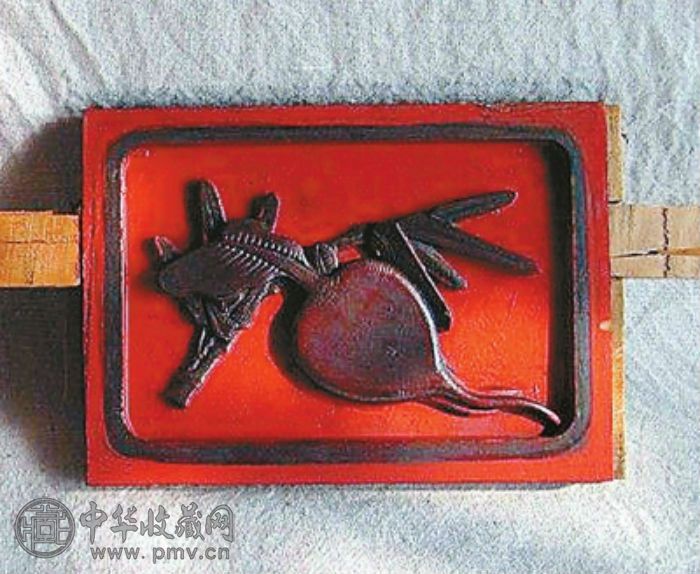 木刻上的萝卜也分外水灵,笔者藏有一枚清代安装在家具上的木刻片,它长17.5厘米,宽11.5厘米,厚1.7厘米,图案寥寥几刀便刻画出逼真的萝卜外形。该木刻片的制作手法是明清时期名震一时的“桃源工”。桃源工不是一种工艺,而是在建筑和家具上运用的相关工艺的统称,因其源自湖南常德桃源一带,所以被称为“桃源工”。桃源并非只有木雕,也包括石雕、刺绣、玉石雕等。