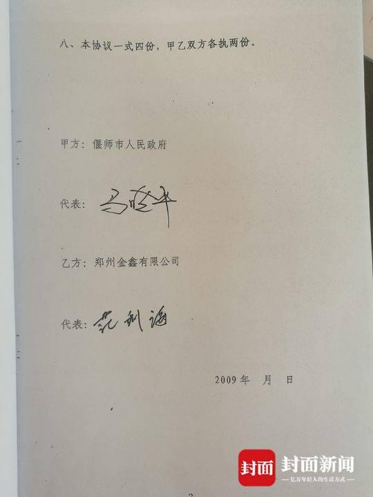 时任偃师市副市长马晓平代表政府在协议上签了字,落款只有年份,无具体月份和日期,也没加盖政府公章。