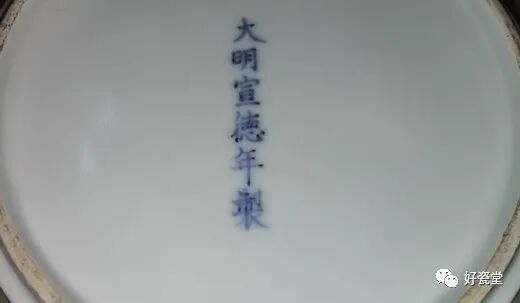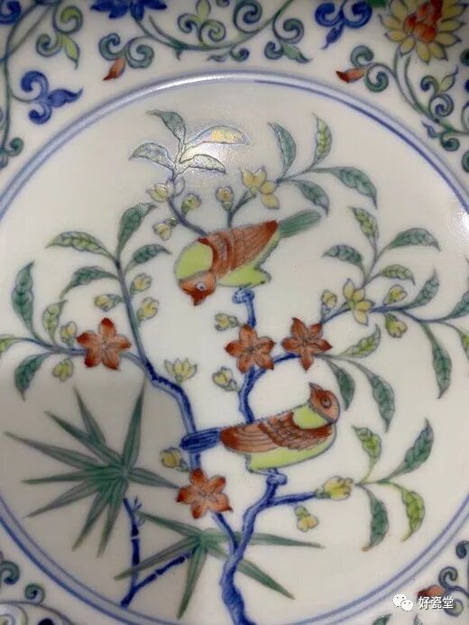 图4“大明宣德年制”六字楷书款的花鸟纹斗彩盘局部