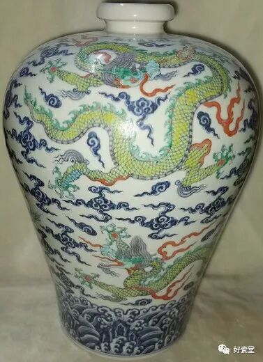 图6-1“大明宣德年制”六字楷书款海水云龙纹斗彩梅瓶