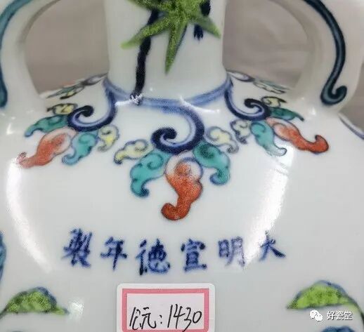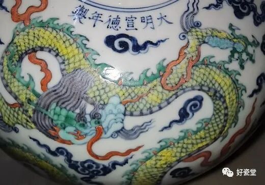 图5-3“大明”宣德年制”六字楷书款的斗彩抱月瓶局部