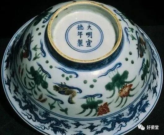 幸亏,中国文物学会专家委员会更正了1985年发现西藏日喀则萨迦寺收藏的大明宣德年制款五彩鸳鸯莲荷纹碗、1988年11月景德镇明御用窑厂遗址出土的大明宣德年制五彩鸳鸯莲荷纹盘为“斗彩”的错误观点!