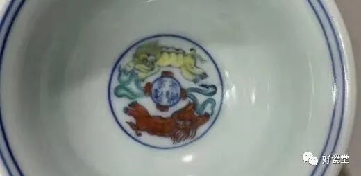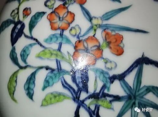 定睛一看,彩饰下面没有青花的花纹轮廓,更像是五彩!