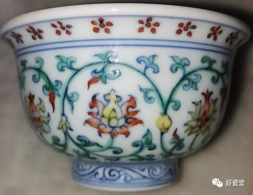永乐斗彩压手杯纹饰品种不少,上面的永乐斗彩缠枝莲纹压手杯,其斗彩工艺具有实质意义,已经非常成熟!肯定不是创烧产品!