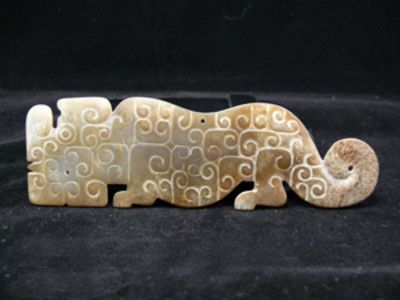 玉琥:完整虎形玉器,或立体圆雕,或扁平板状。 常有纹饰,谷纹、雷云纹。 琥作礼器或佩饰“以白琥礼西方”,琥是祭祀西方之神的礼器,用白玉来雕琢,尺寸形制没有圭那麽严格的规定,但必须是虎形。该形或立体、或扁状、或葡状,应该是完整的「虎」。