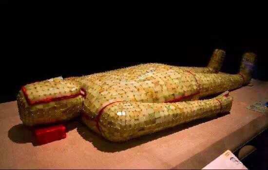 玉衣:用金丝或银丝将上千块小玉片串连而成的衣服。