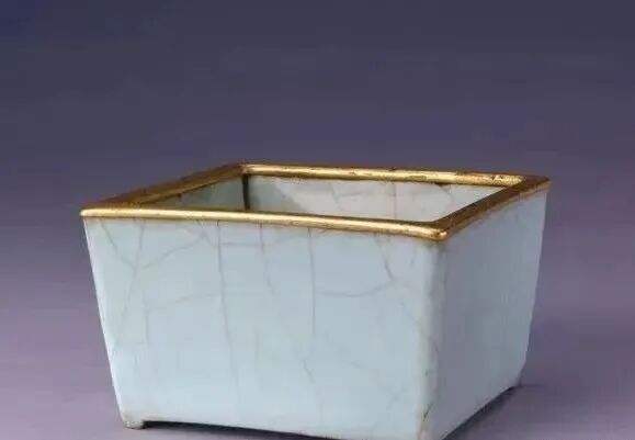 四、“紫口铁足”的风致,哥窑器坯体大都是紫黑色或棕黄色,器皿口部口边缘釉薄处由于隐纹露出胎色而呈黄褐色,同时在底足未挂釉处呈现铁黑色,由此,可以 概括出故有“紫口铁足”之说,这也是区别真假哥窑器的传统方法之一。
