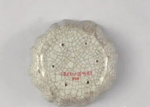 3.哥窑釉面均开有形态各异的纹片,按形状划分,有梅花纹、网状纹、细碎纹等多种。因胎中含大量可溶性盐类金属,烧成时渗出于底足、口缘及裂纹的缝隙中,与釉面形成强烈的颜色对比,形成“紫口铁足”“金丝铁线”的特殊装饰效果。