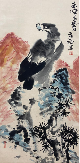 012 李苦禅 赤峰立鸷 98x48cm 轴