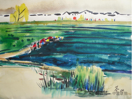 210 吴冠中 村庄(水彩) 32x24.5cm