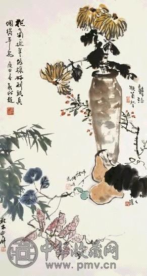 - 展品名:费新我 张辛稼 沈子丞 吴 清供图 立轴 设色纸本