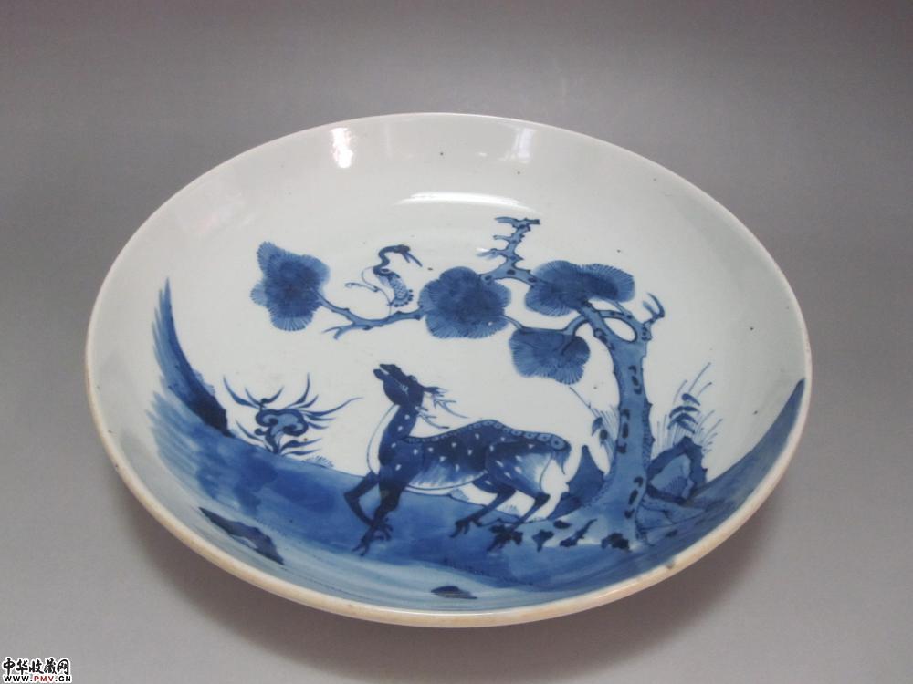 清中期青花鹤鹿同春大盘《已售》