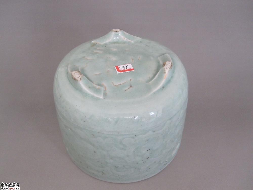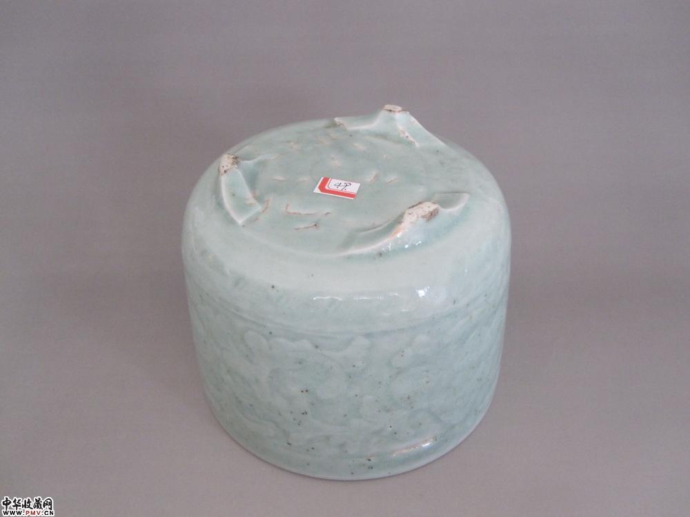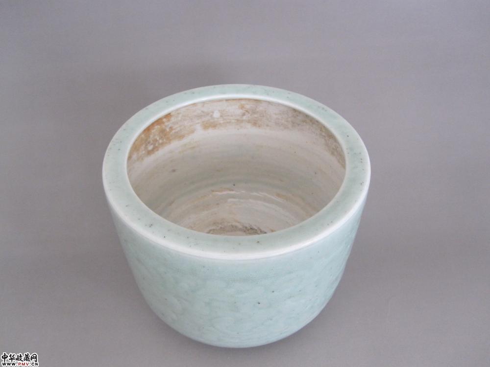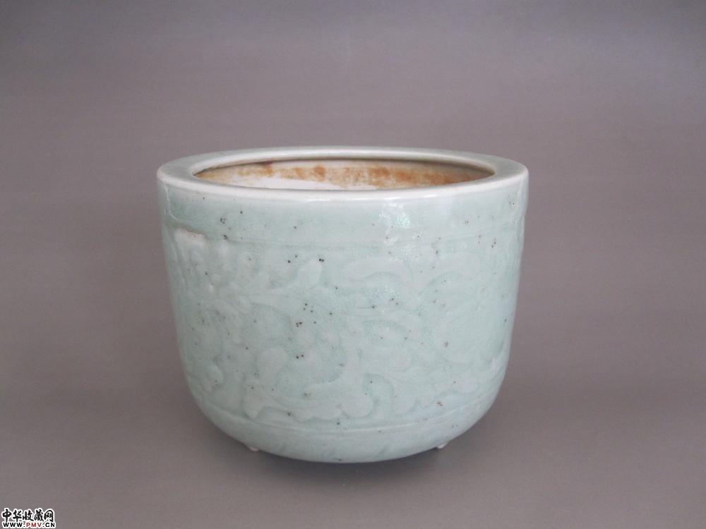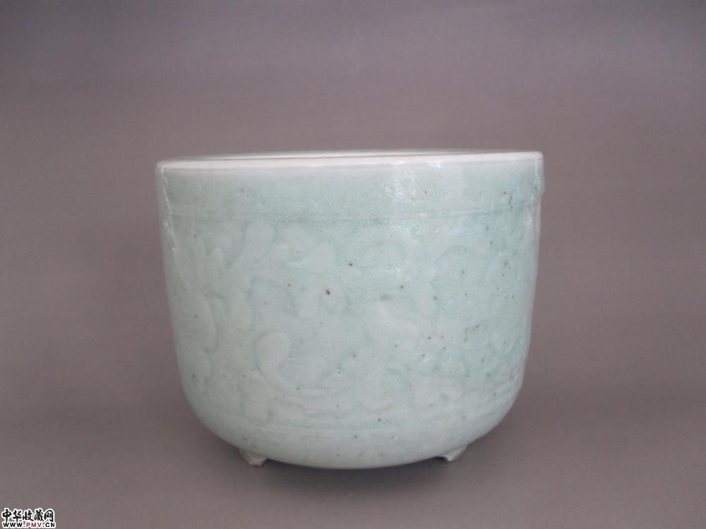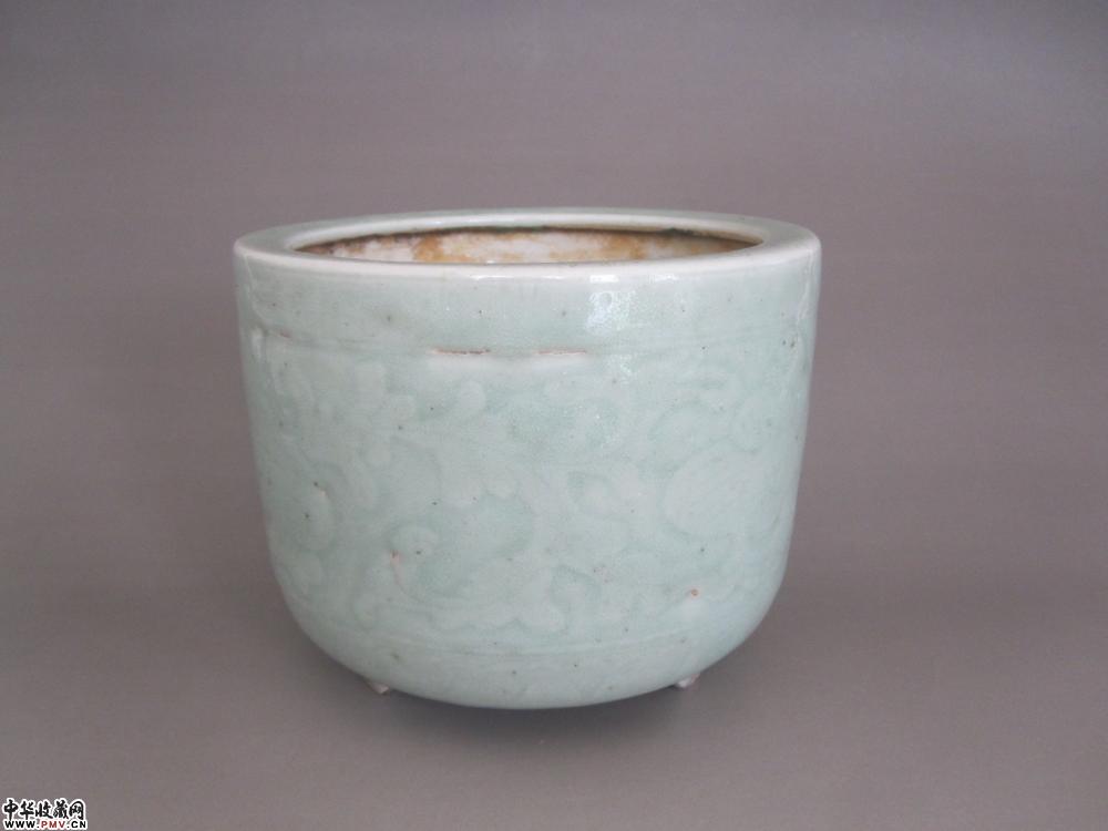 明代龙泉窑粉青釉暗刻缠枝牡丹纹香炉