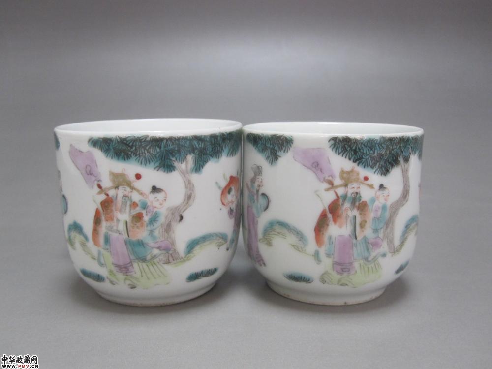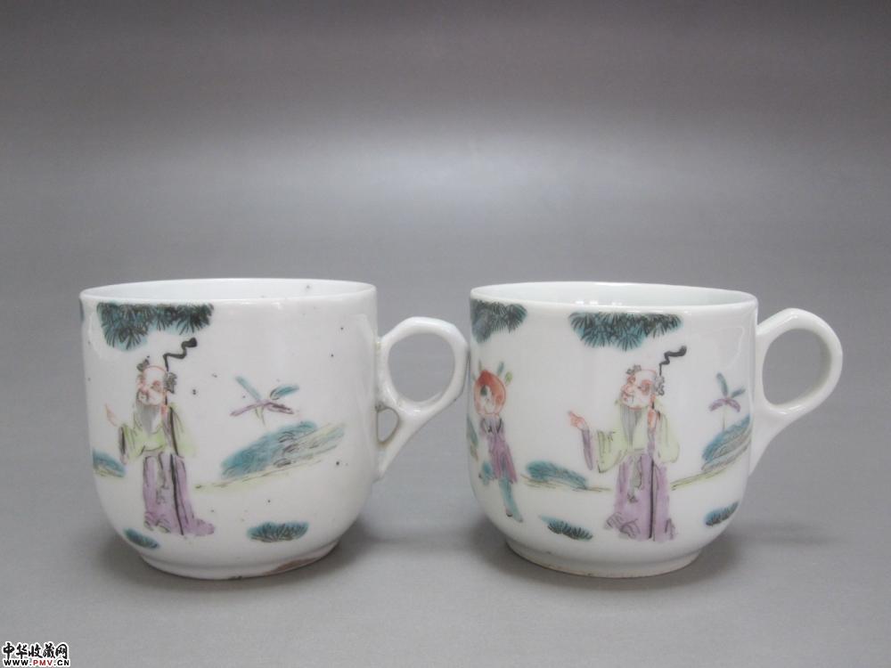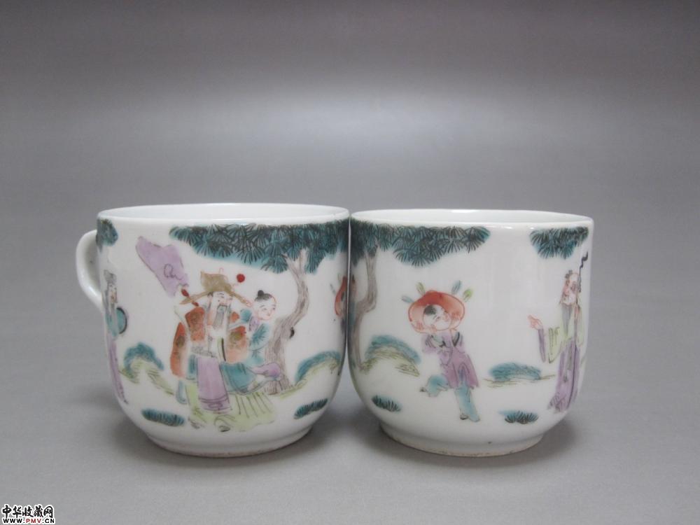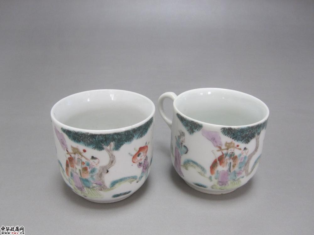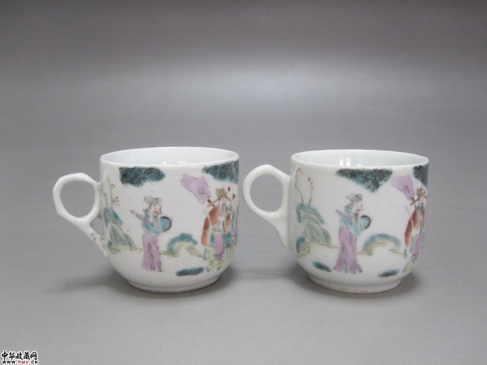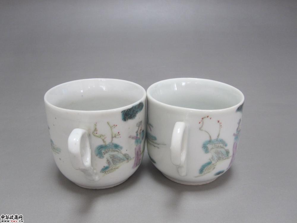 光绪粉彩人物纹茶杯两只《已售》