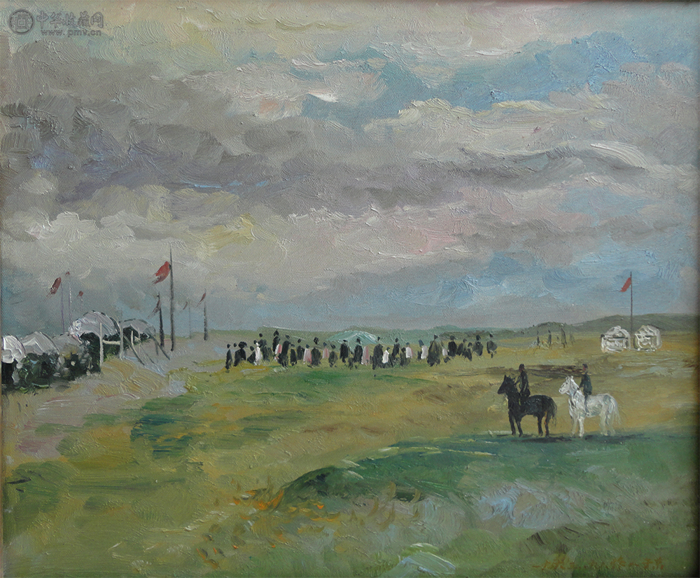 吴作人《油画牧民集市》