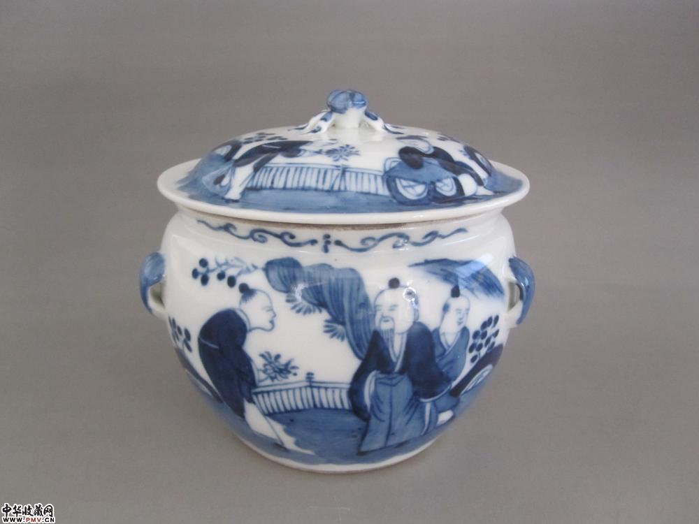 光绪青花高士图盖罐《已售》