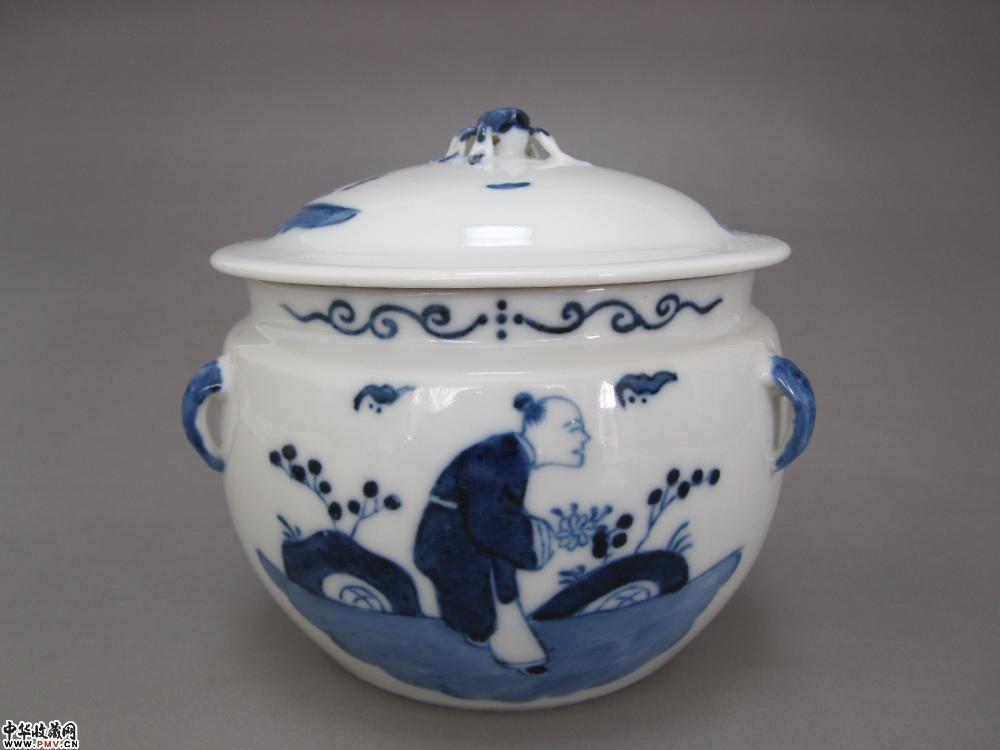 光绪青花人物纹盖罐
