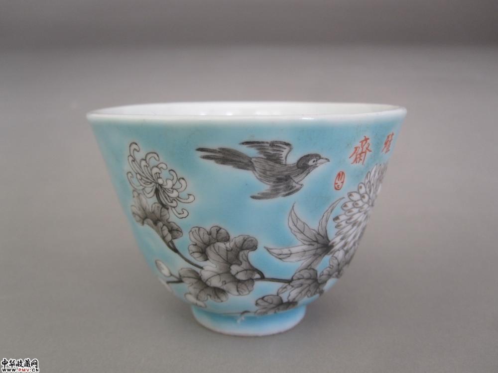 清末民国墨彩大雅斋花鸟纹杯《已售》
