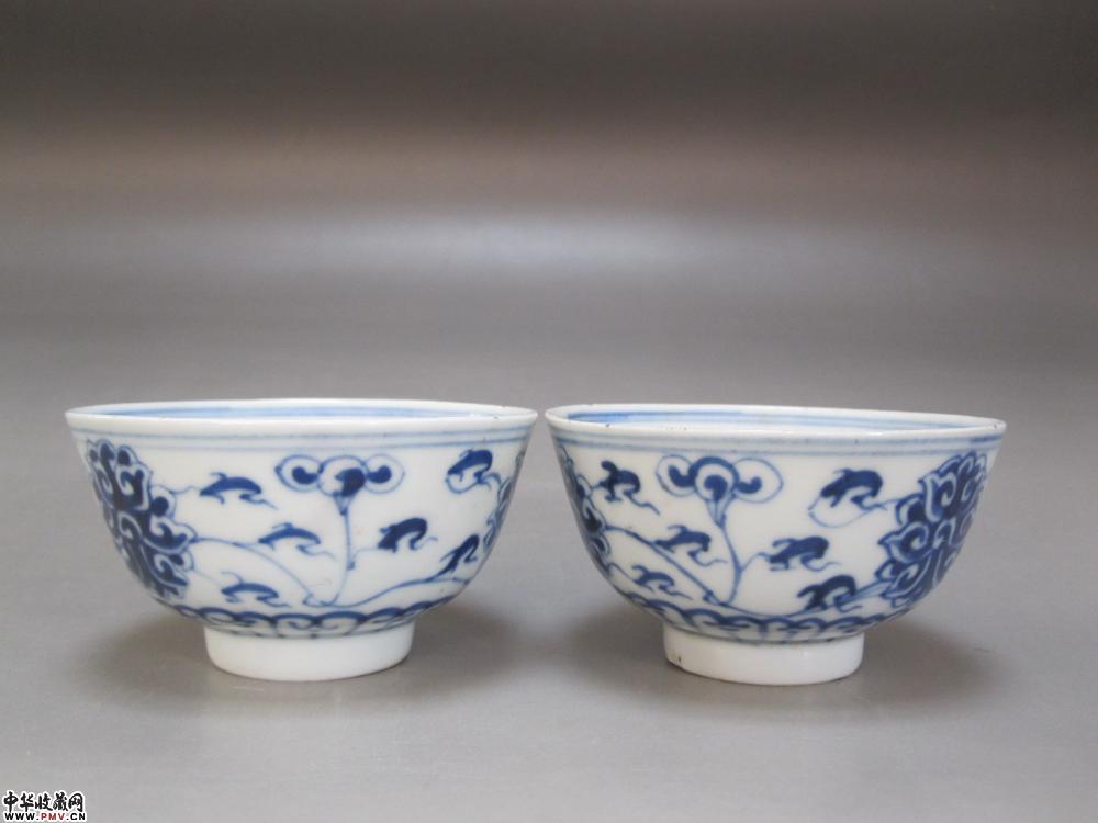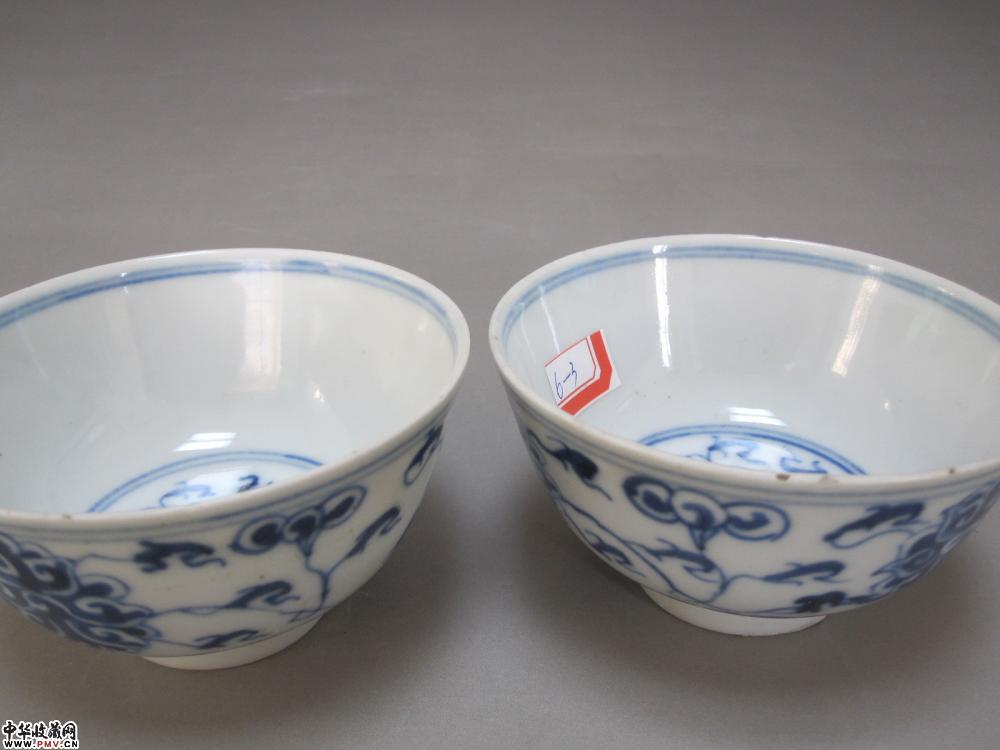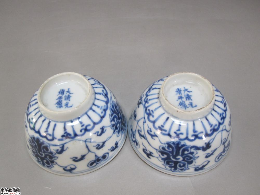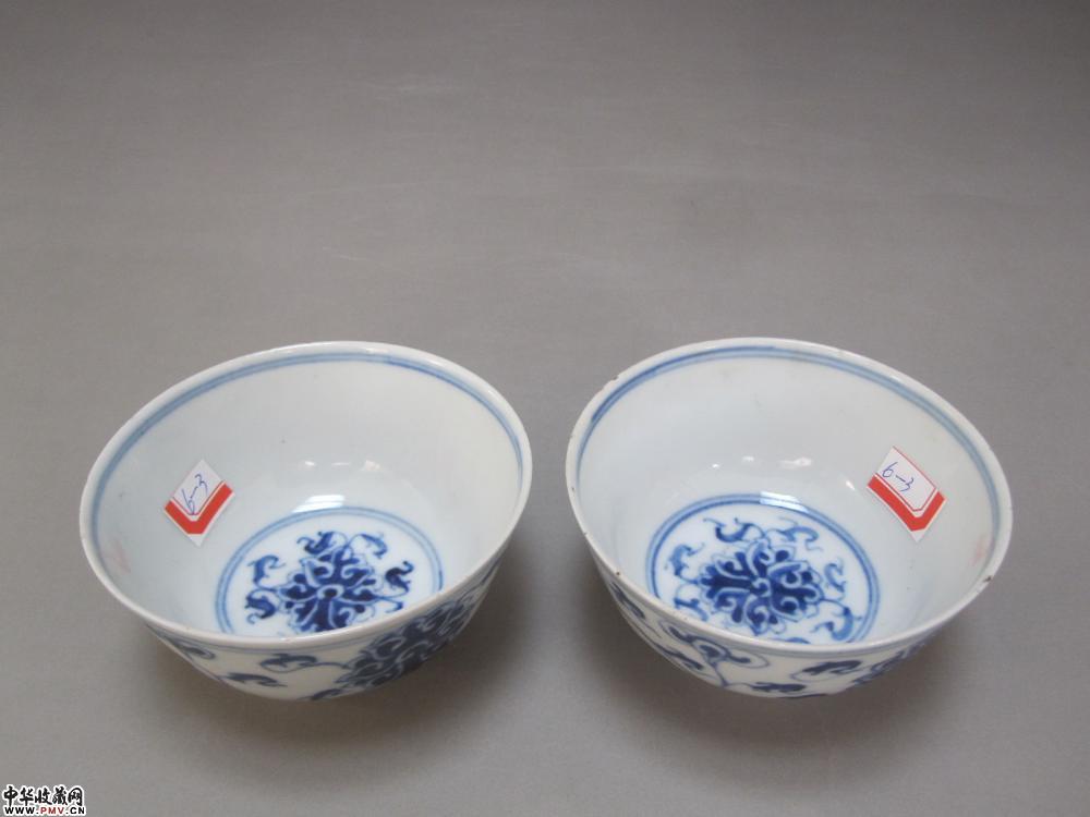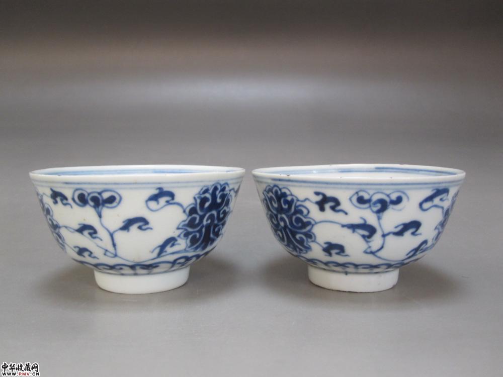 e光绪青花缠枝莲碗一对