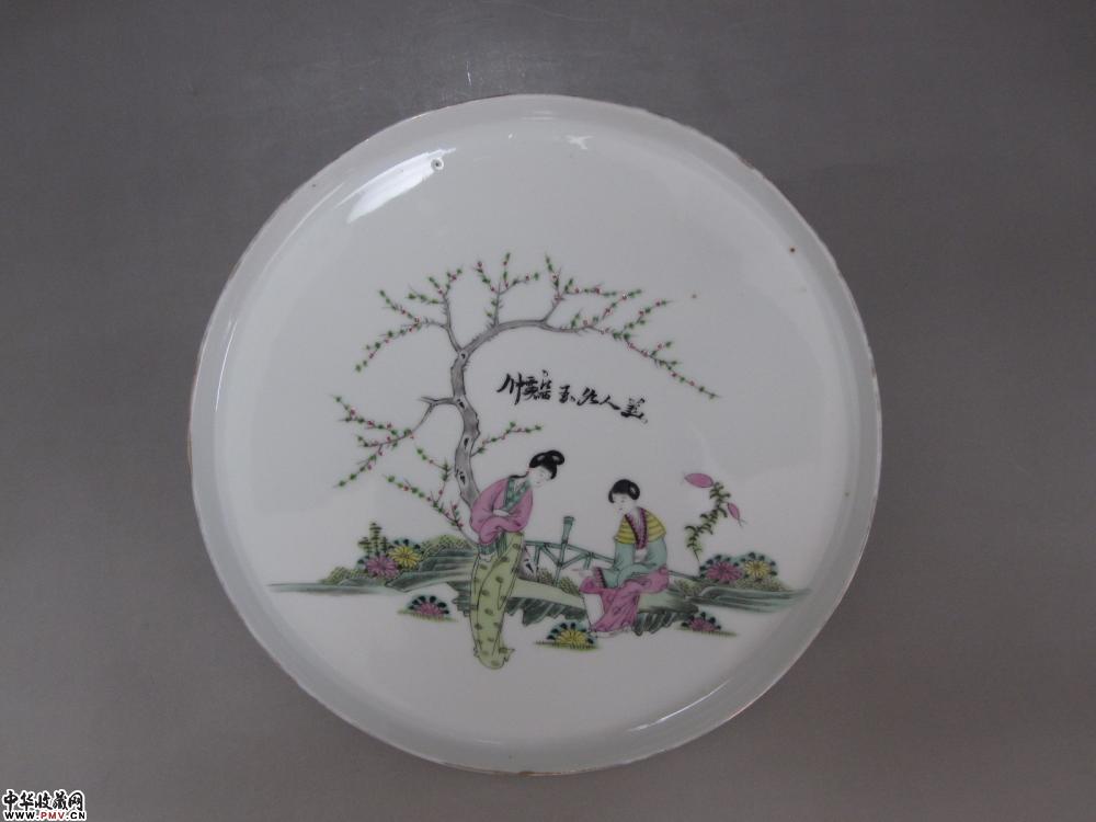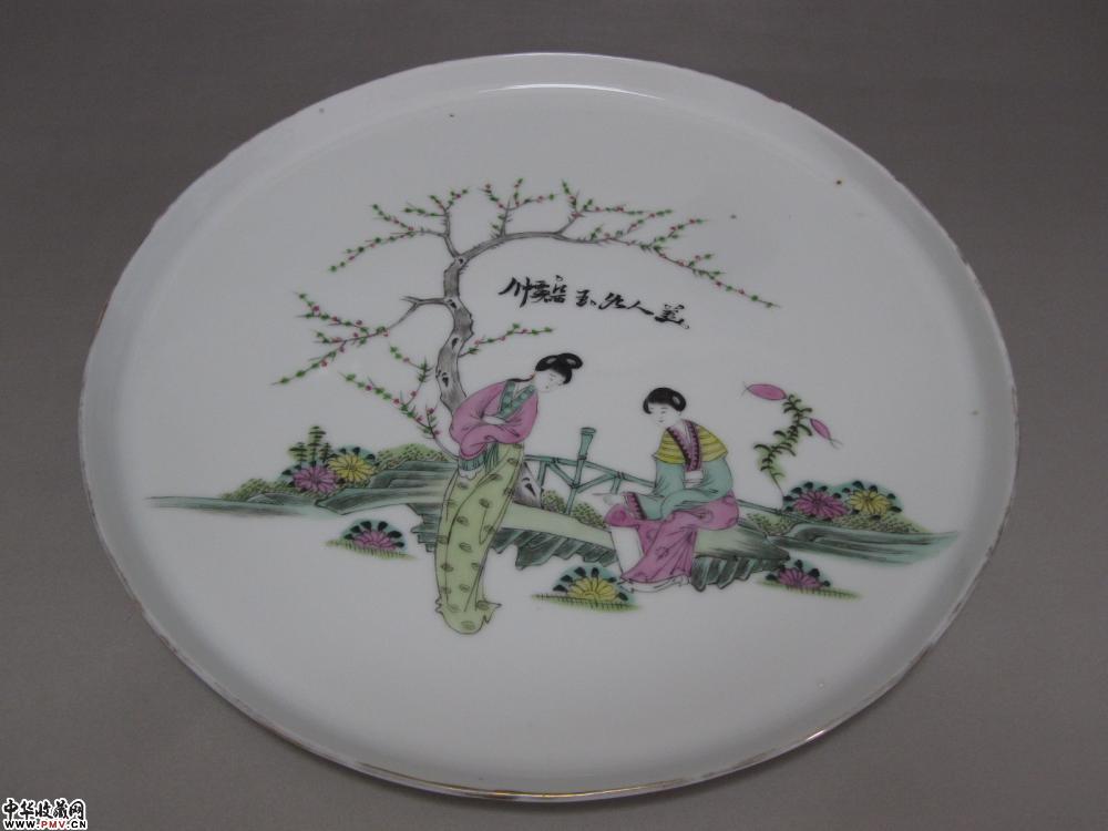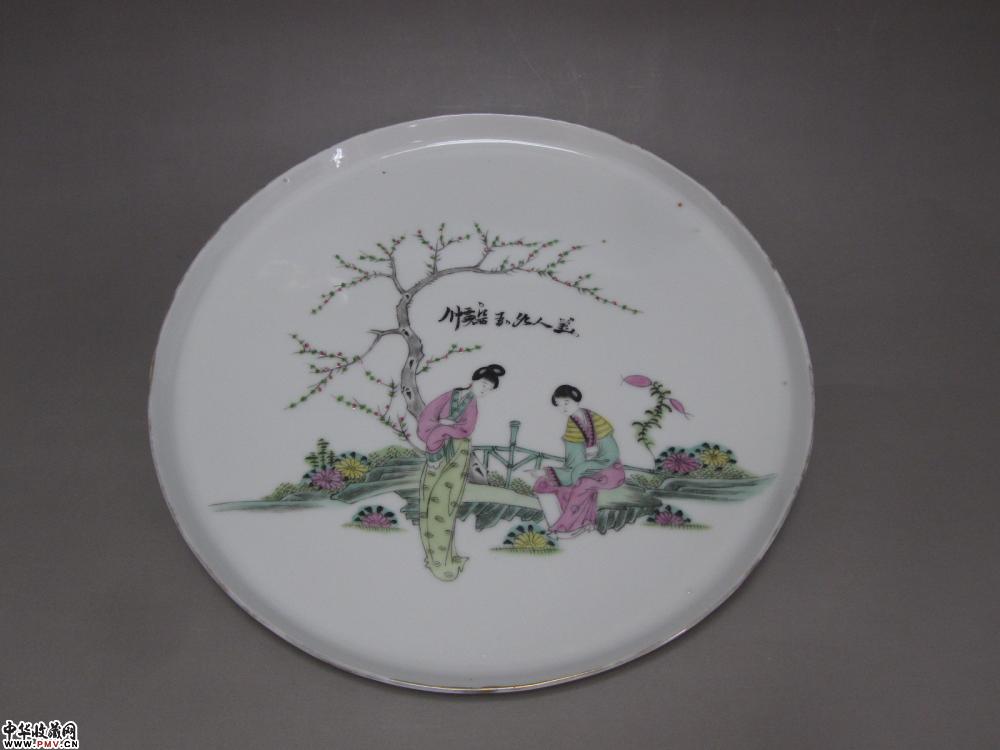 民国粉彩仕女人物纹大盘