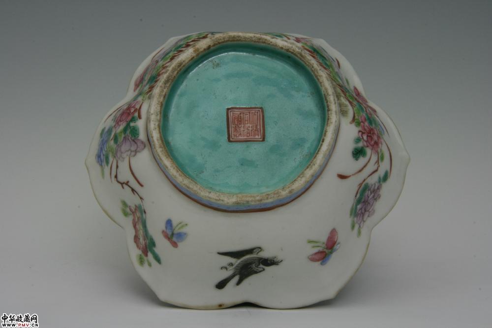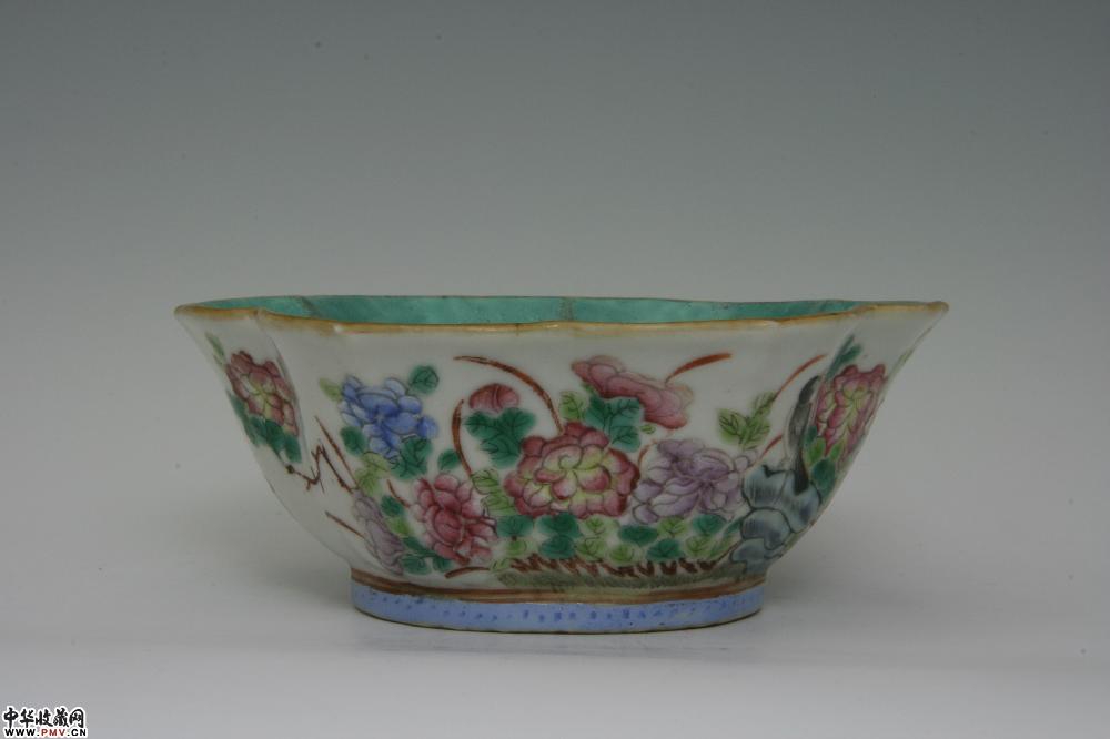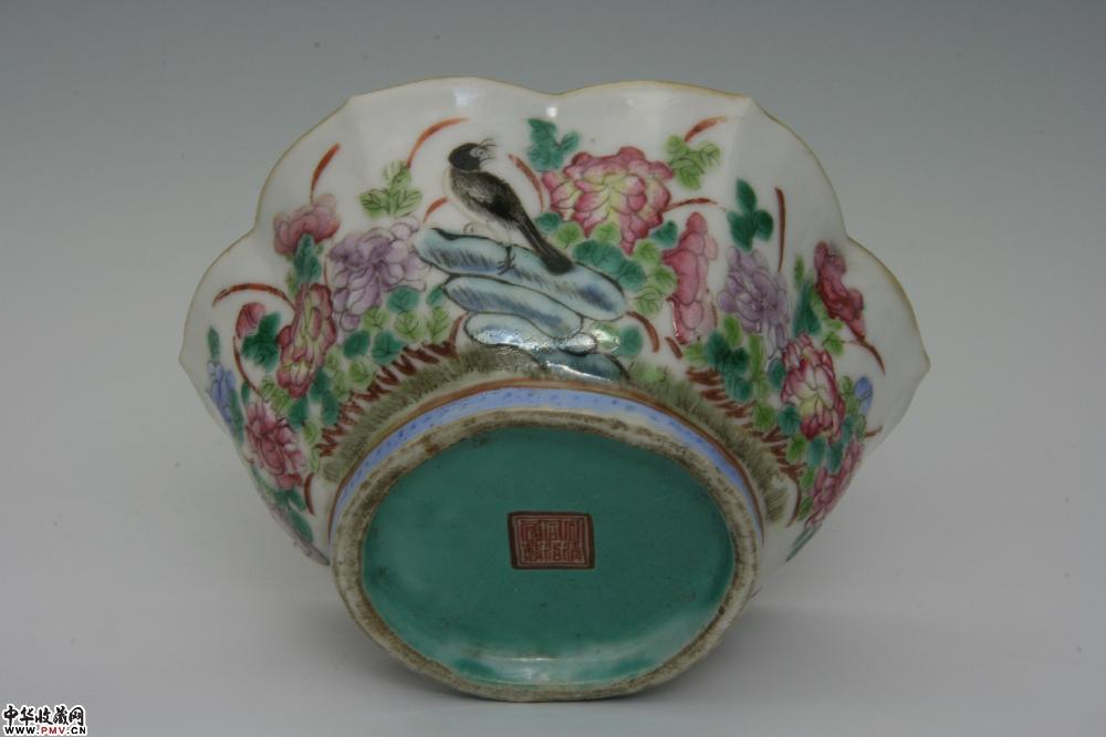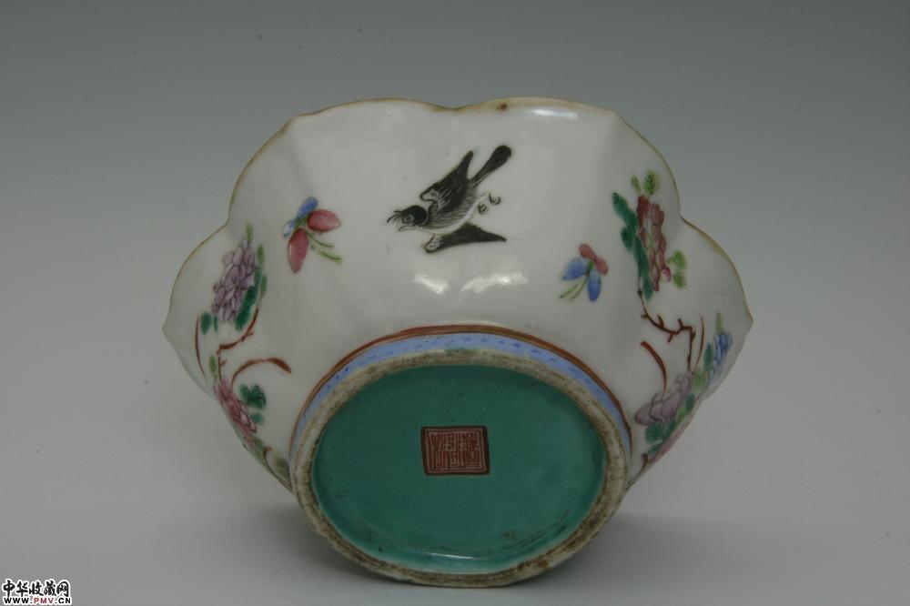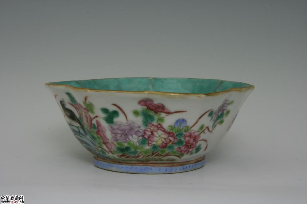 清同治景德镇窑粉彩花鸟纹海棠碗
