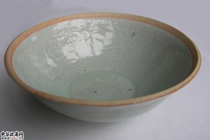 宋影青印花双鱼花纹芒口碗