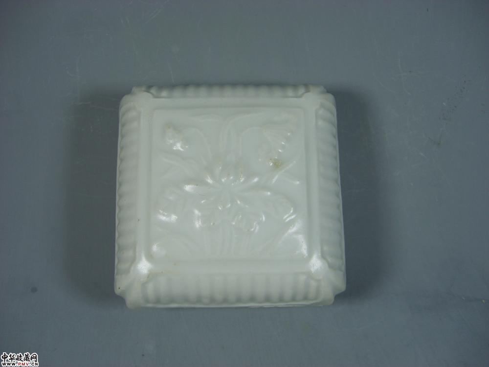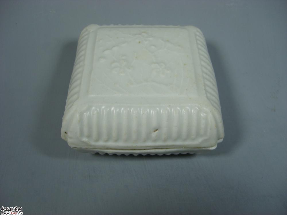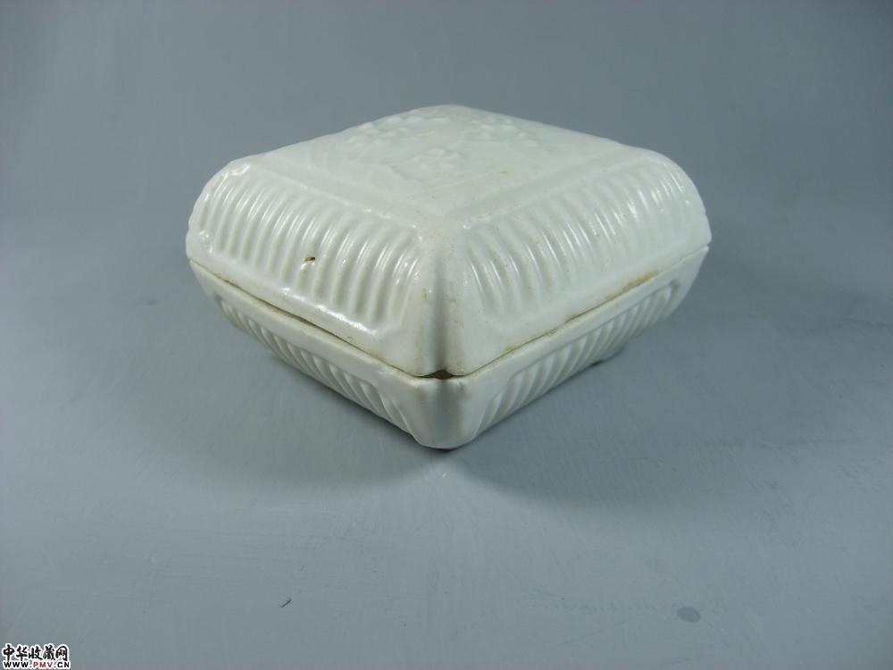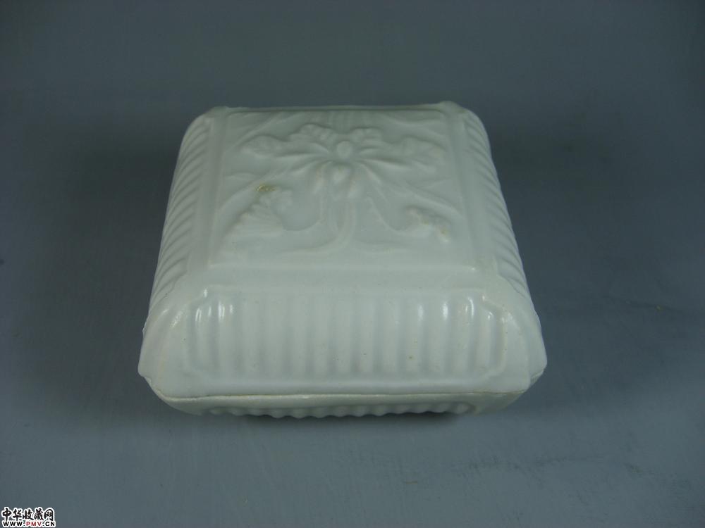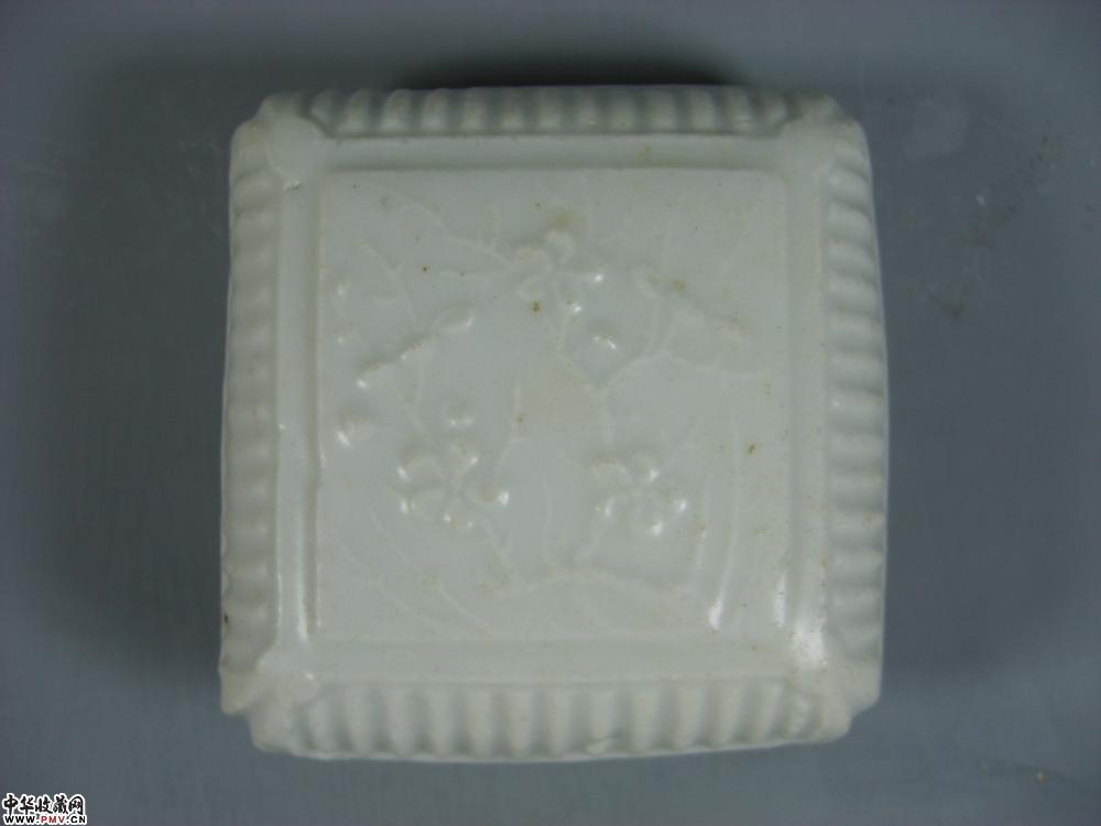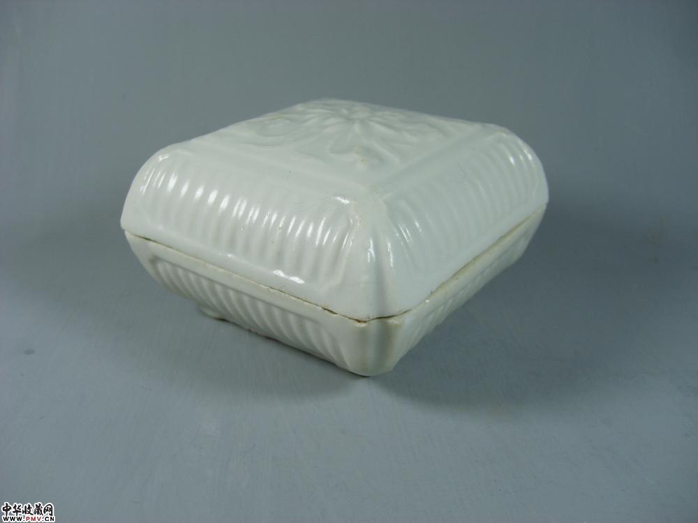 元德化窑白釉印菊花纹方形粉盒