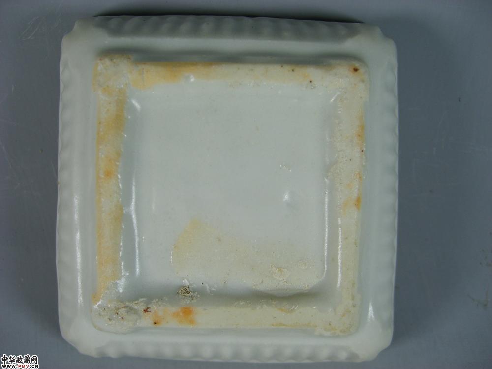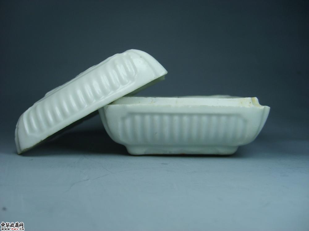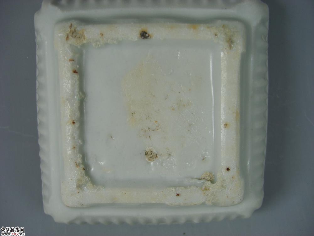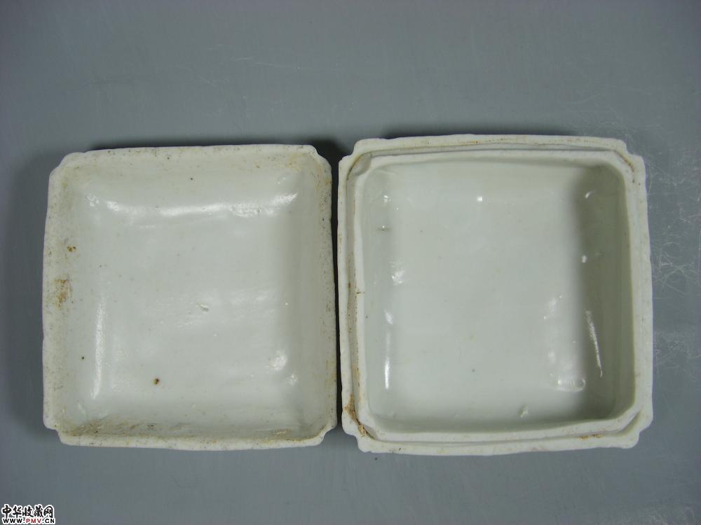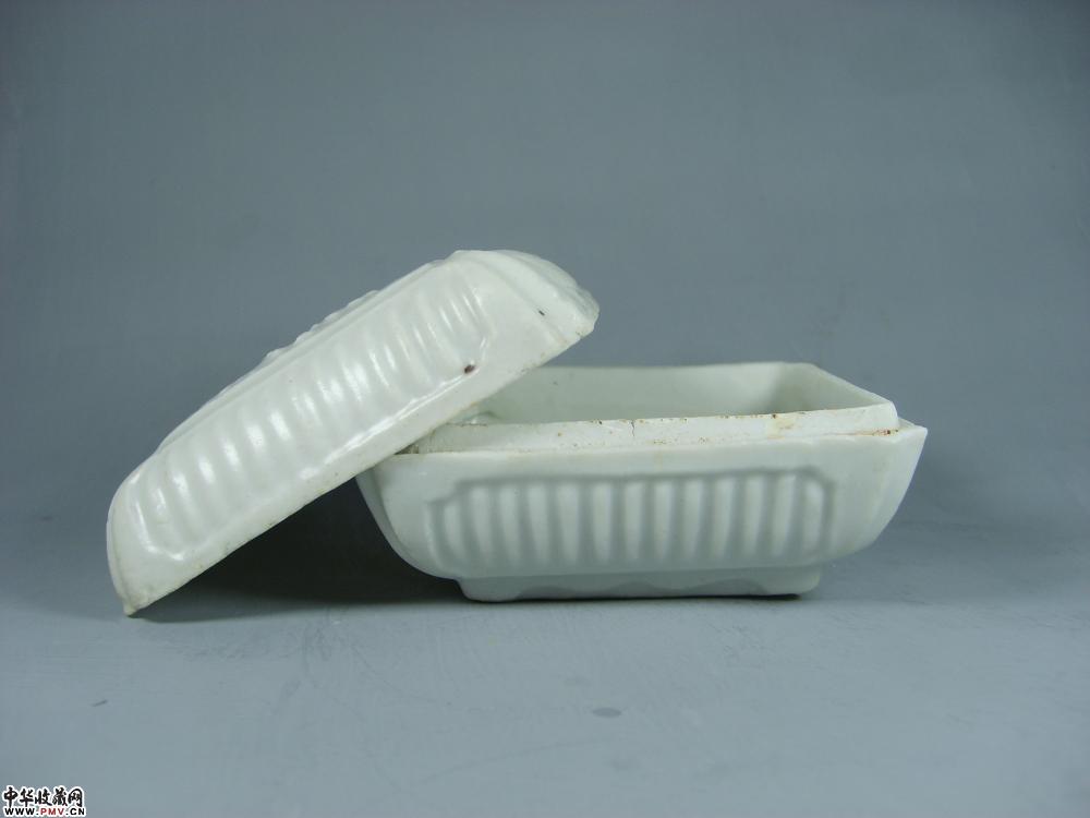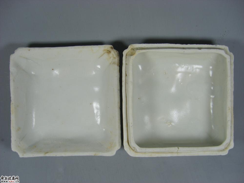 元德化窑白釉印菊花纹方形粉盒