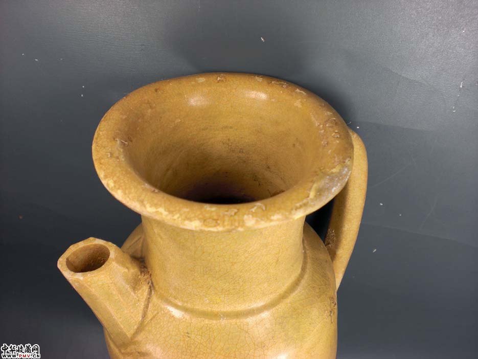 高16.8厘米,这件长沙窑执壶基本上保持完整,只有局部小脱釉,这也是长沙窑的一个主要的通病,是因胎釉结合部紧密所致,口沿小磕,简易填补!