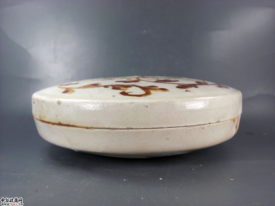 北宋磁州窑之介休白釉褐彩花卉粉盒