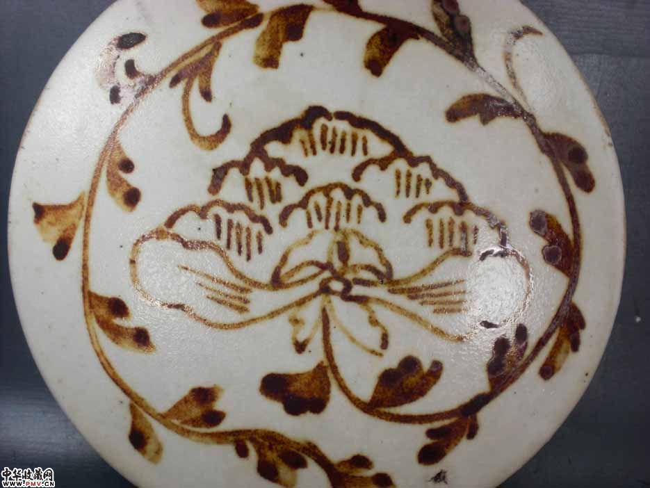 口径10.8厘米,口沿稍有吃土外完好!尺寸比较大,非常漂亮的一件北宋磁州窑白釉褐彩粉盒,非常具有代表性。【最后附有一张中华博物的一张同类器物的图片】