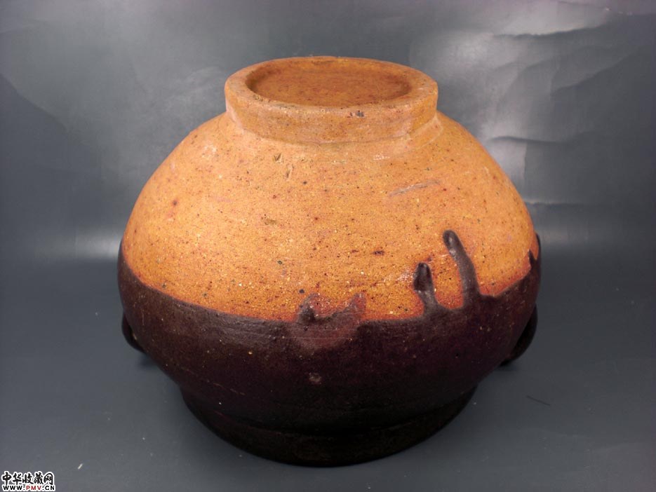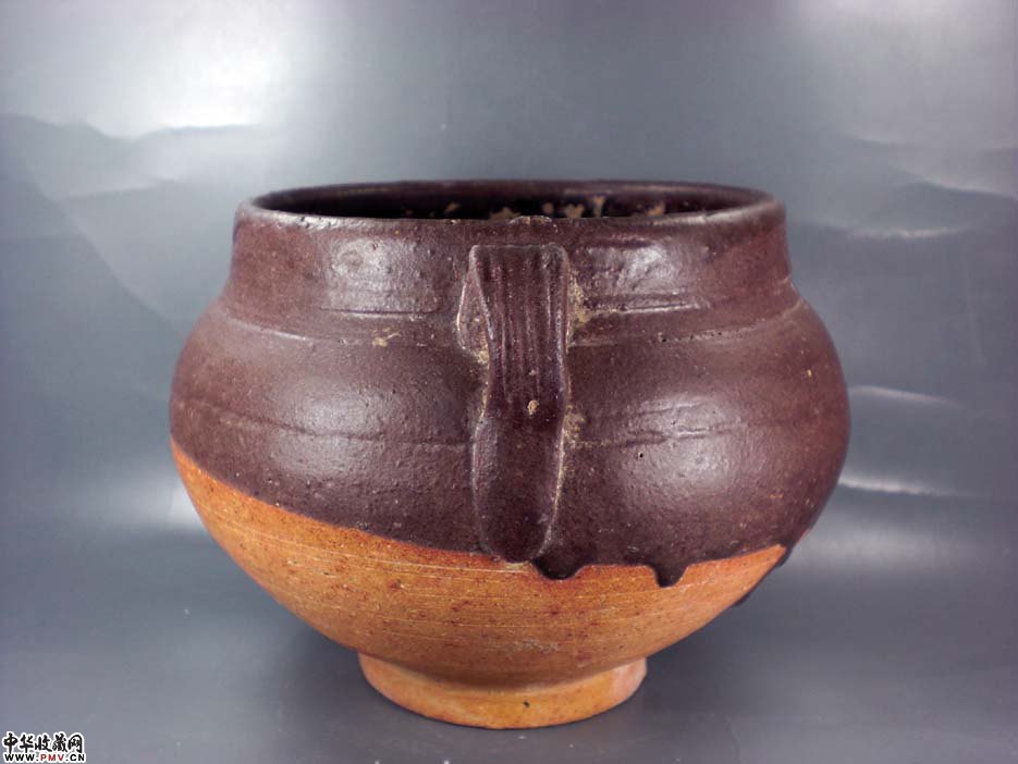元磁州窑酱褐釉双耳罐