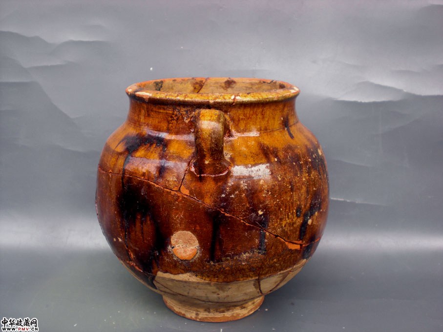 高14厘米,可惜残粘,极少见的藏品,施釉工艺独特!现标本件处理!