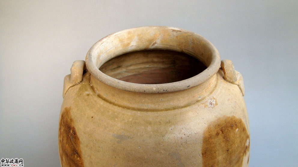 唐湘阴窑青瓷褐彩斑纹双系罐