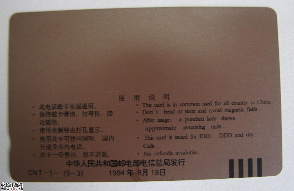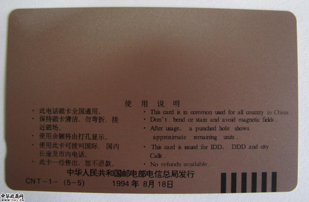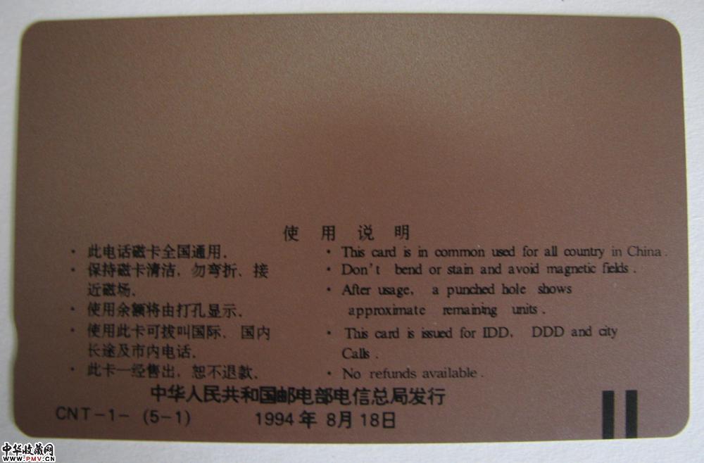 [田村卡]CNT-1 中国通用电话磁卡首发纪念(长城卡)