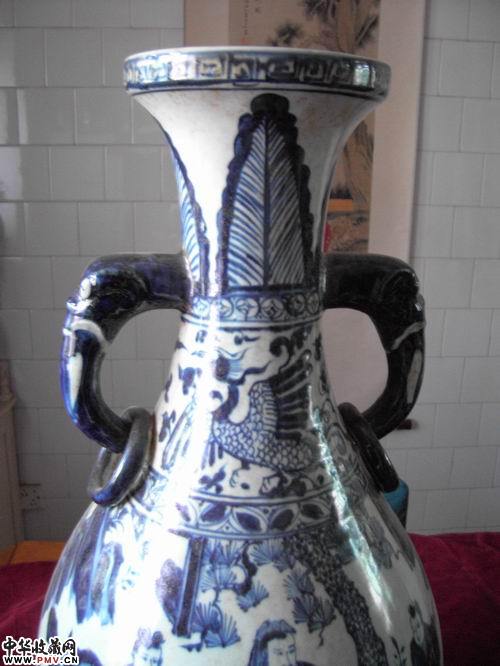 元 三顾茅庐青花象耳瓶