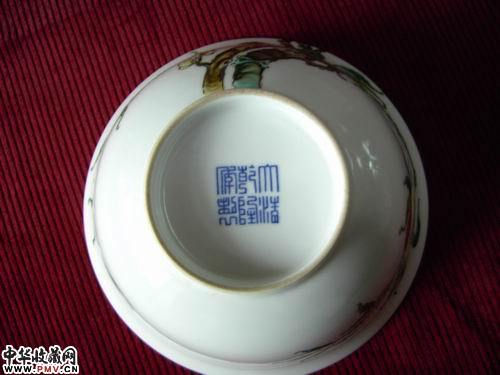 清 乾隆款白地九桃花卉碗