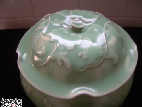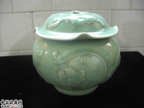 南宋 梅子青釉荷型盖罐
