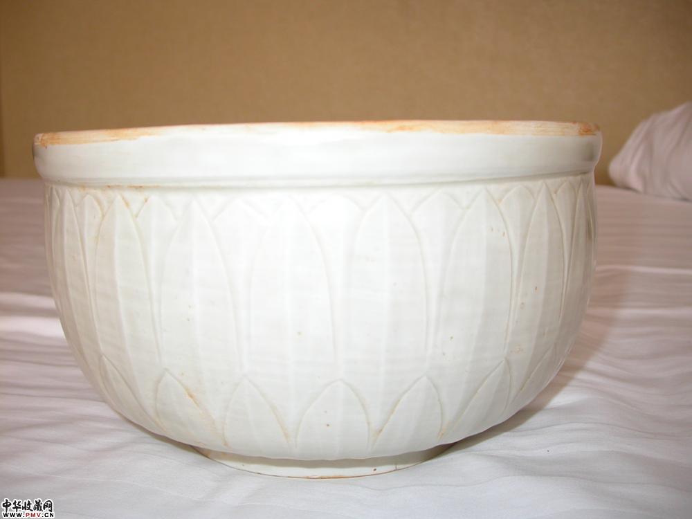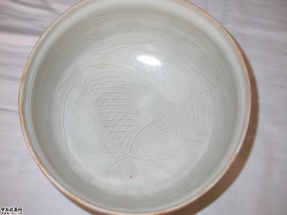 (此藏品于2008年5月1日售出)宋代定窑刻鱼纹莲花净手盂,口径25cm ,高14cm ,底径13.5cm,售价16800元,