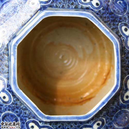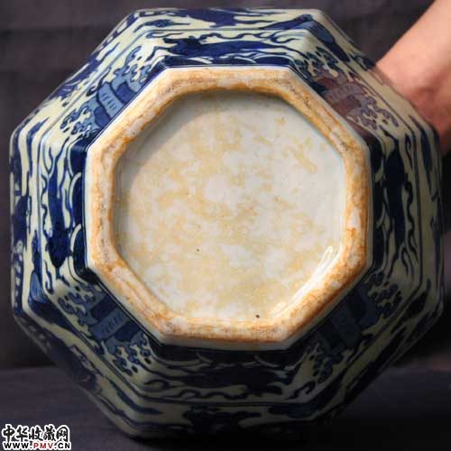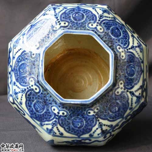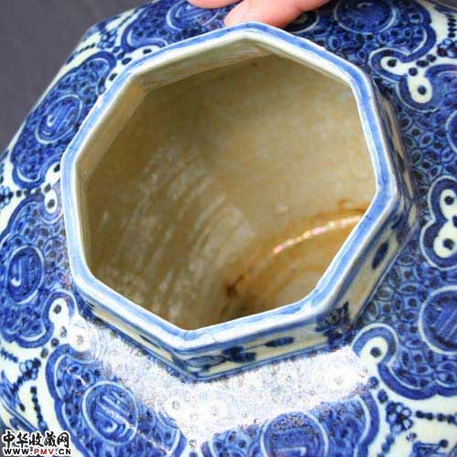 (此藏品于2008年4月27日售出)明万历青花八仙人物棱口罐,尺寸:口径11厘米,底径12.5厘米,高21厘米。售价8千。手机:13471937925 ,电话:0775-4327765,E-mail:lmly7199@163.com,QQ:493785780