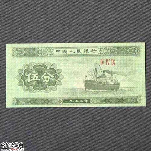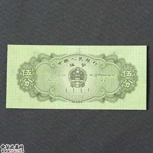 此张5分纸币不知什么原因竟然印有空心五星水印和古币水印,极为罕见。售价50万。有兴趣收藏的朋友请联系!手机:13471937925 ,电话:0775-4327765,E-mail:lmly7199@163.com,QQ:493785780