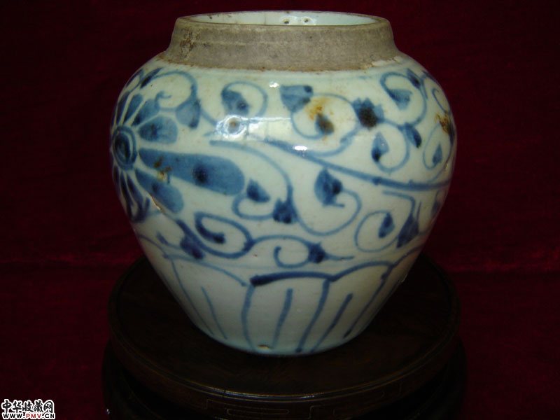明末清初青花花卉罐