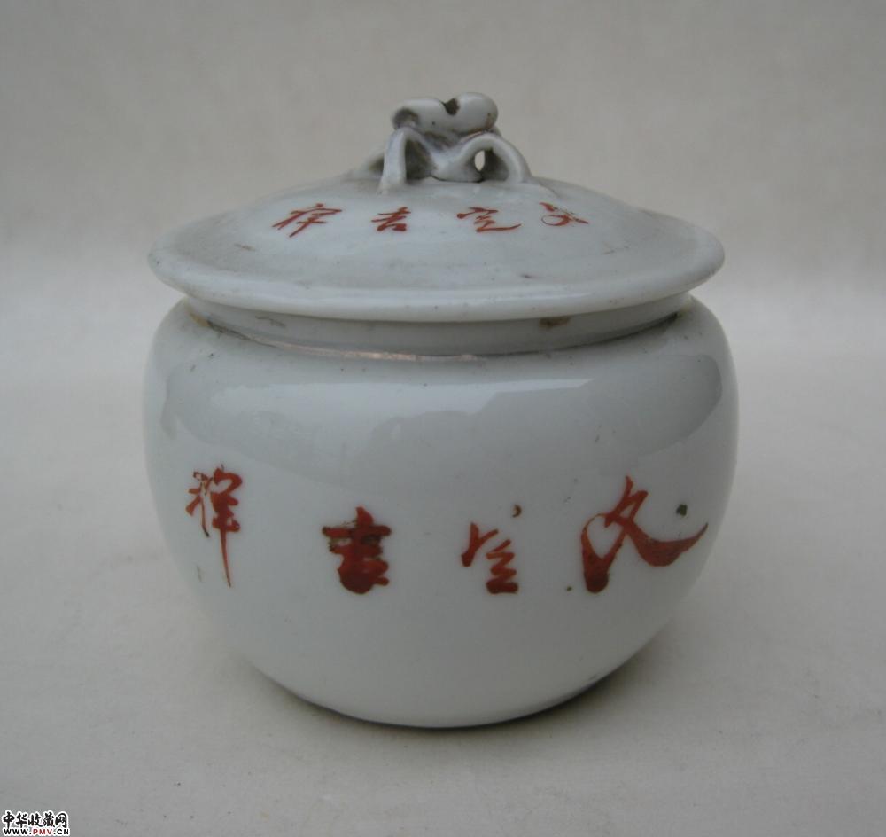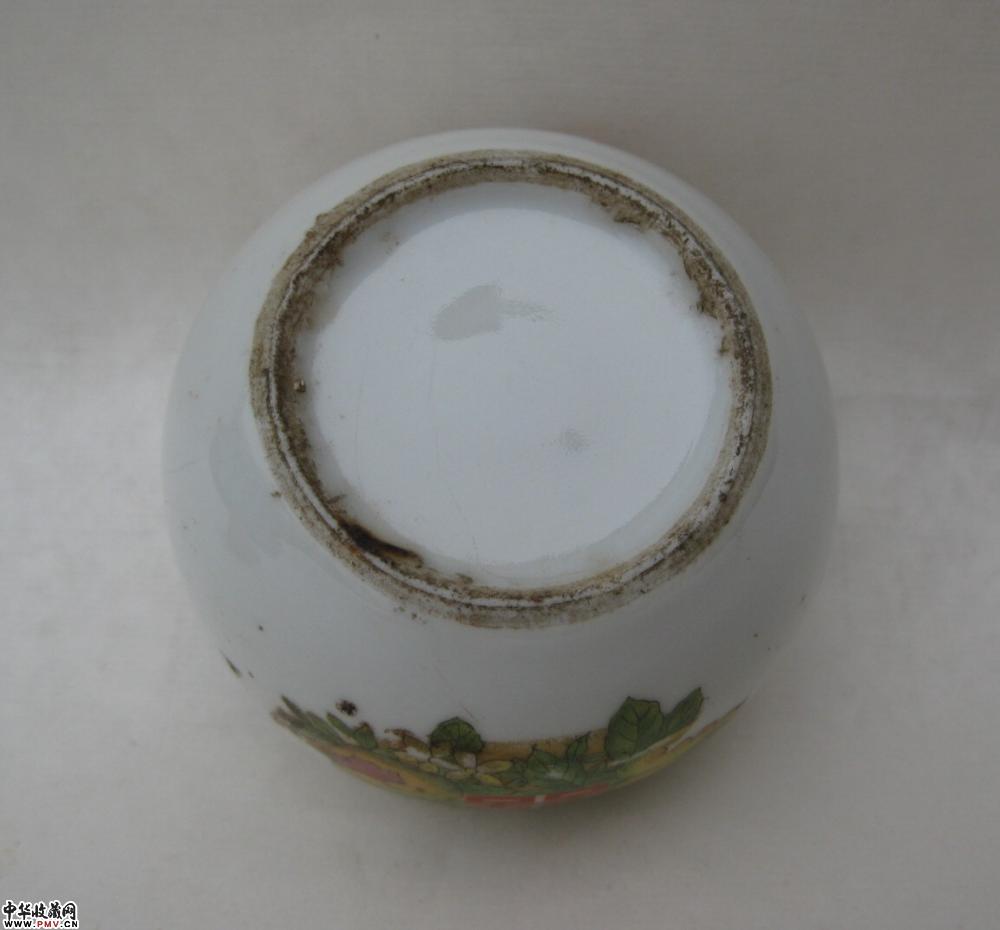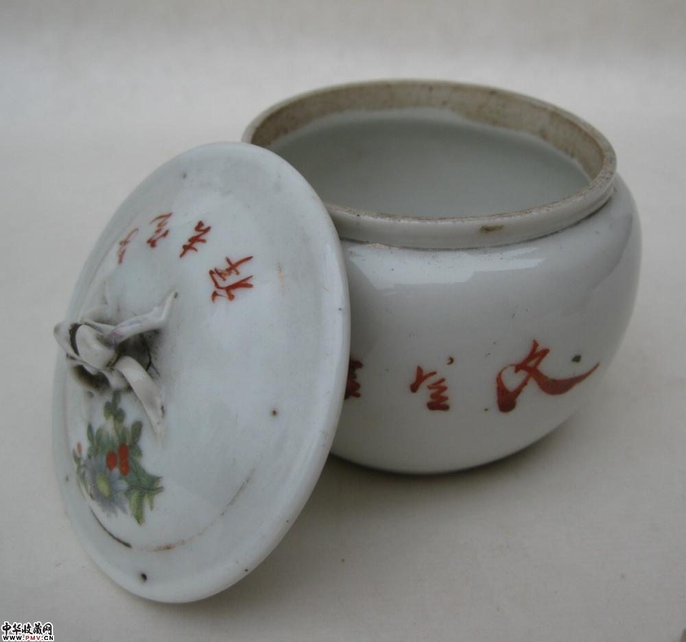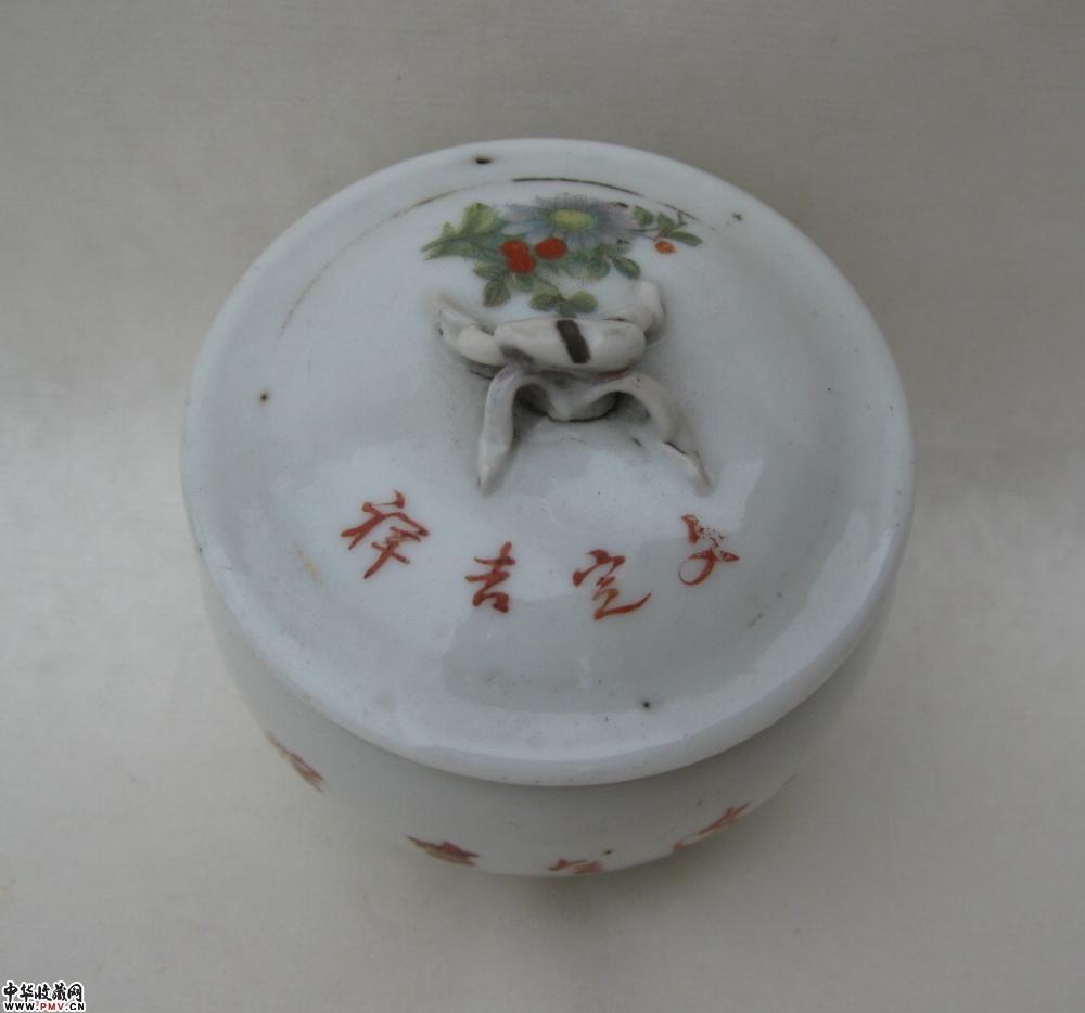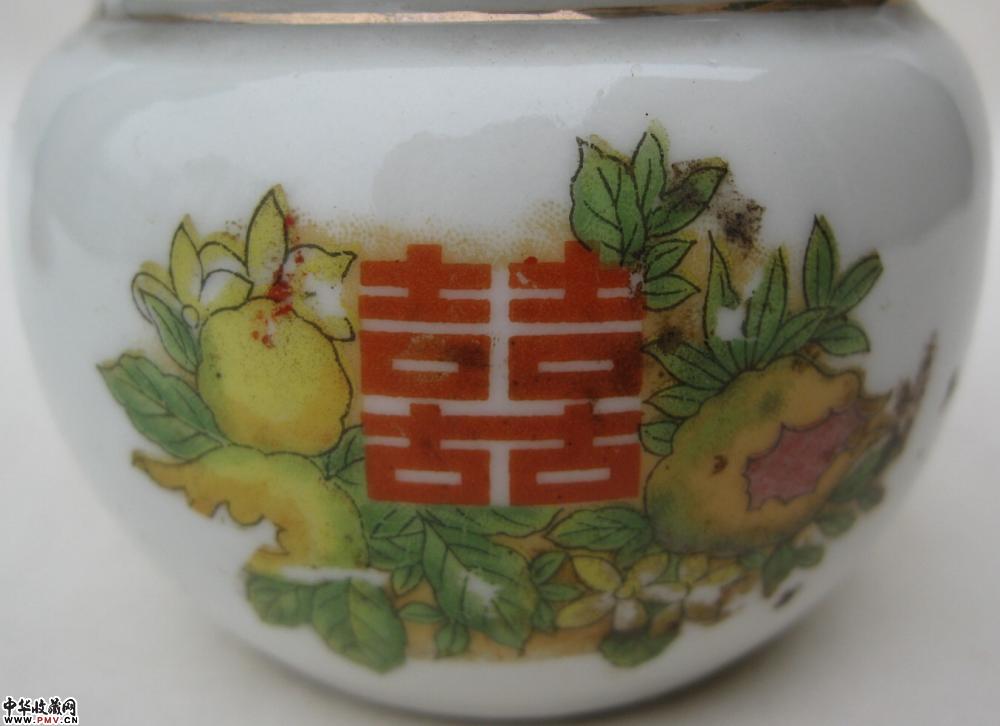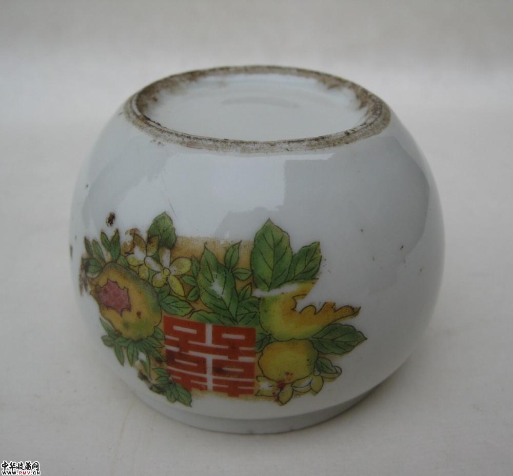 民国料彩喜字花卉纹小盖罐一只