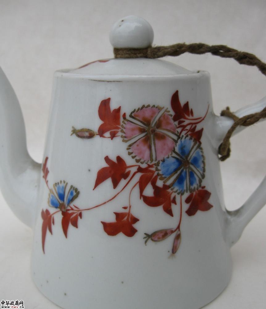 民国粉彩花卉壶,釉色莹润,胎质细白,画工精细,全品相,高约10.5公分.