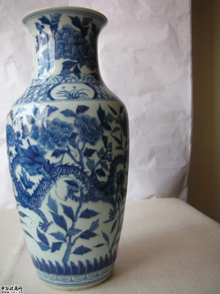 光绪 青花龙穿牡丹纹瓶