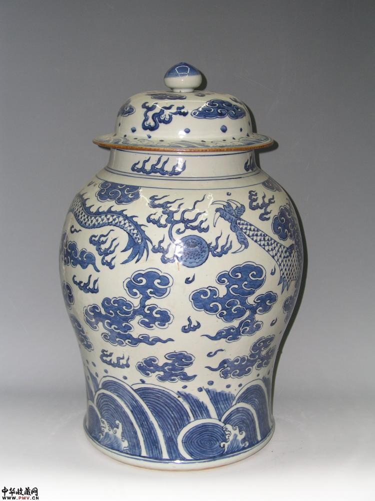 康熙青花龙纹将军罐